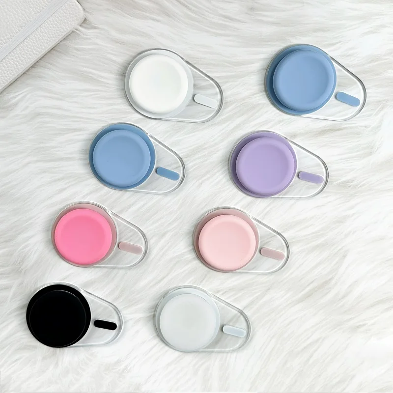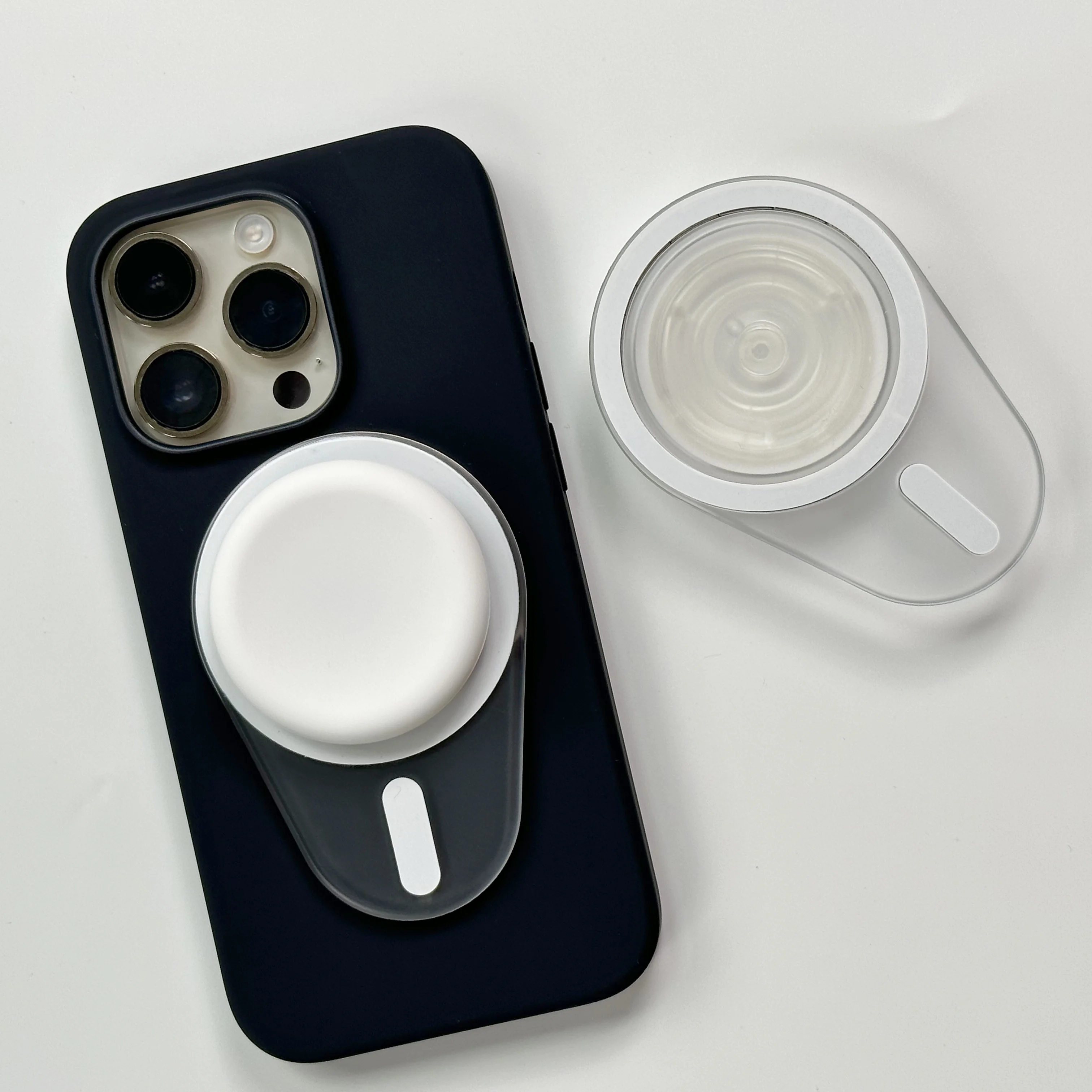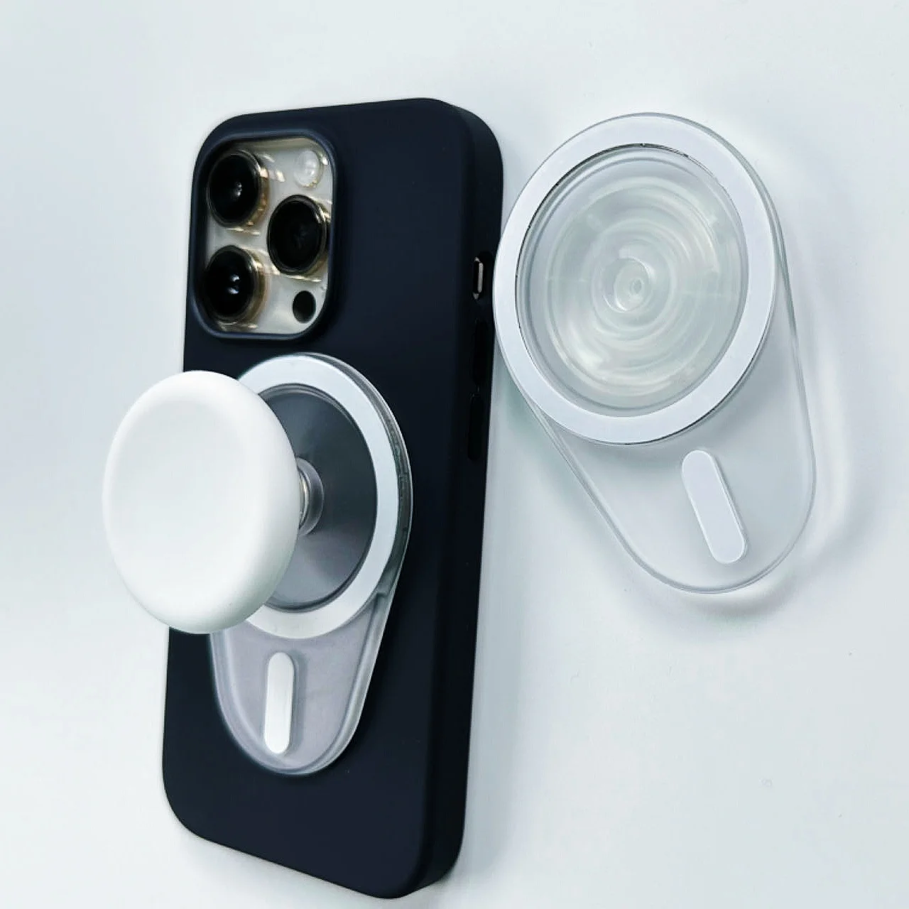 The bottom is a transparent oval foldable stand with a circle of strong magnets, which firmly sucks the phone and is not easy to fall off.